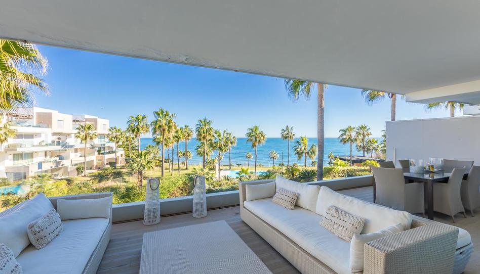 Apartamento de estilo moderno localizado en primera línea de playa, con preciosas vistas al mar desde donde contemplar espectaculares amaneceres, situado en la magnífica urbanización Horizon Beach y construido por el prestigioso promotor Taylor Wimpey, destacando por su diseño contemporáneo y sus calidades superiores. La comunidad, impecablemente cuidada, ofrece acceso directo a la playa, exuberantes jardines mediterráneos y una elegante piscina exterior climatizada para disfrutar durante todo el año, además de distinguidas zonas comunes pensadas para el descanso, con cómodas tumbonas y una amplia terraza cubierta que invita a relajarse en un entorno privilegiado. Se encuentra a solo 5 minutos en coche del centro de Estepona y del Puerto de la Duquesa, con todos los servicios a mano, e incluye una cómoda plaza de aparcamiento en garaje subterráneo y un amplio trastero situado justo frente a la plaza, convirtiéndolo en una excelente oportunidad frente al mar que merece ser visitada.