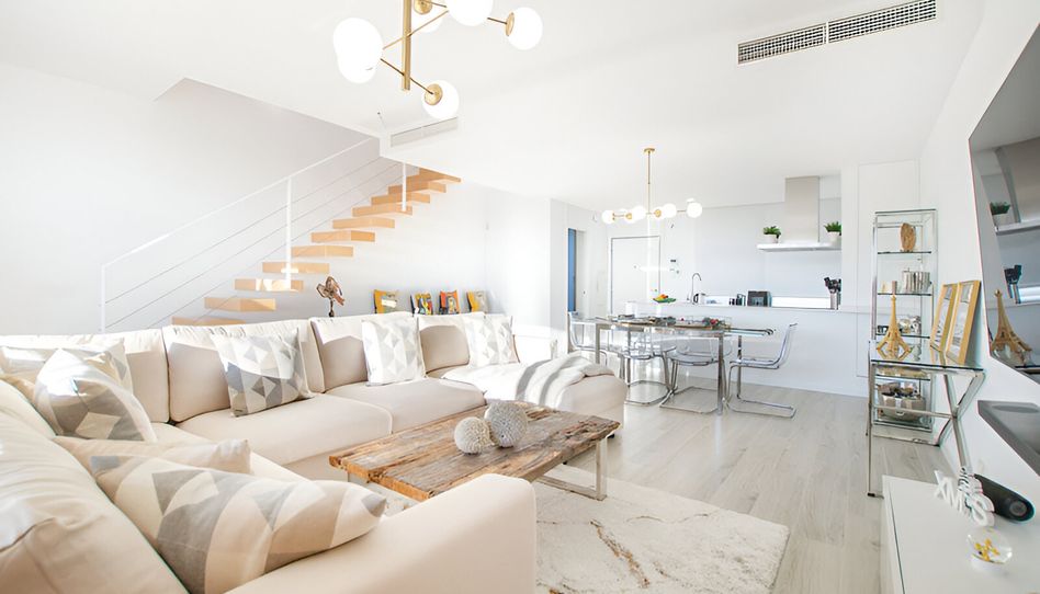 Esta impresionante casa adosada de tres dormitorios destaca por su diseño contemporáneo y espacioso, con interiores luminosos que se abren a amplias terrazas y a un solárium en la planta superior. Entre sus características especiales se incluyen vistas panorámicas, grandes ventanales de suelo a techo, armarios empotrados, baños en suite, aire acondicionado y cocinas de lujo.