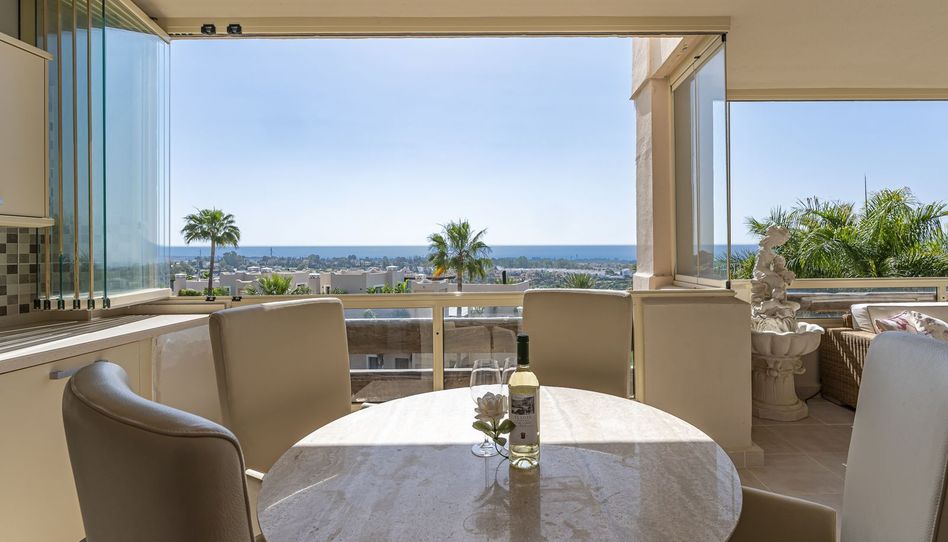 Apartamento con vistas panorámicas en la Nueva Milla de Oro! En venta: un exclusivo apartamento con impresionantes vistas en la prestigiosa zona de El Paraíso, Nueva Milla de Oro, Estepona. Amplia superficie habitable: 107 m² + terraza cerrada de 24 m², perfecta para una vida cómoda y relajante. • Distribución: 2 dormitorios, 2 baños (uno recientemente renovado), aire acondicionado por conductos. • Comodidades: completamente amueblado, equipado con electrodomésticos Siemens, lavadora y secadora Bosch. • Características únicas: cocina de verano en la terraza con enfriador de vinos y refrigerador adicional. • Estacionamiento y trastero: 2 espacios en el garaje subterráneo y un trastero de 6 m². El apartamento está ubicado en un complejo cerrado con piscina, rodeado de pintorescas vistas al mar y La Concha. Acceso completo a las comodidades: restaurantes, campos de golf, canchas de tenis y tiendas a poca distancia. Una opción ideal para inversión o para un estilo de vida cómodo en la costa mediterránea.