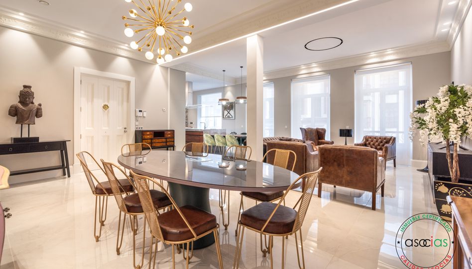 Así es esta nueva exclusiva que os traemos. Se trata de una vivienda de 235 metros, en un edificio de principios del siglo XX al que se ha hecho una reforma integral con unos acabados espectaculares. Está situado en una segunda planta exterior, con unos amplios ventanales que llenan el piso de luz natural, el salóncomedor en el que se integra una preciosa cocina completamente equipada, cuatro dormitorios dobles cada uno con baño incorporado y zonas de vestidor, un despacho desde el que poder trabajar y un aseo de cortesía. Como podéis ver un piso que transmite algo diferente, orden, espacio, serenidad ....