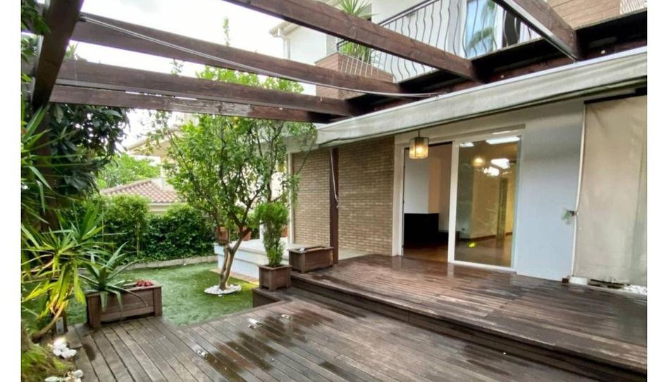 Planta Baja: Amplio vestíbulo que da paso a un espacioso salón-comedor muy luminoso y conectado directamente con el jardín , protegido por un acogedor porche de madera. Cocina independiente, tipo office, moderna y totalmente equipada con salida también al jardín. La generosa dimensión de la cocina permite la posibilidad de una reforma para poder hacer un dormitorio . En esta planta encontramos también un baño completo.
