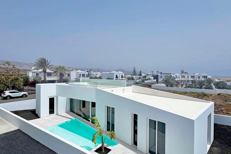 Villa independiente de una sola planta nueva a estrenar. Consta de piscina, amplios jardines, bbq, terraza,cochera para dos coches, azotea transitable con vistas al mar, amplio salón con techos altos con zona de comedor, el cual da a la piscina, tres dormitorios con armarios empotrados de los cuales el dormitorio principal es bastante amplio y tiene baño en suite, este dormitorio y otro tienen salida directa a la piscina; en total tiene dos baños, cocina independiente totalmente equipada, solana y trastero. Los suelos son de 1,20 x 1,20. Visita recomendada.