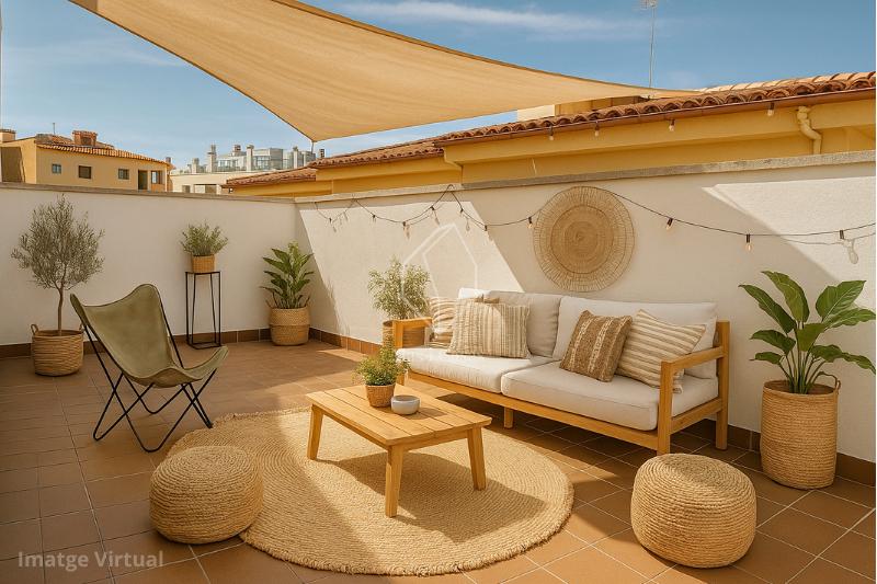 L’espai de vida s’articula al voltant d’un ampli saló-menjador banyat de llum natural, amb accés directe a una terrassa assolellada, perfecta per als teus moments de relaxació o àpats a l’aire lliure.