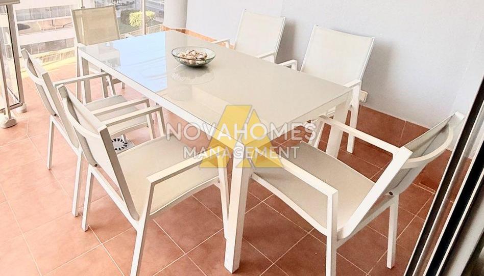 Precioso apartamento a escasos metros del Mar Mediterráneo en primera linea de dos dormitorios, baño completo, cocina con galería y salón comedor con acceso a una amplia terraza. La vivienda cuenta con aire acondicionado por conductos, fibra optica persianas automáticas. Está dentro de una urbanización privada en primera linea del mar, con piscina y zonas ajardinadas. Cuenta con plaza de estacionamiento exterior en el recinto privado de la urbanización y toda clase de servicios cercanos.Este anuncio y su contenido visual no son vinculantes, deben considerarse a título informativo y pueden estar sujeto a errores y/o cambios.
