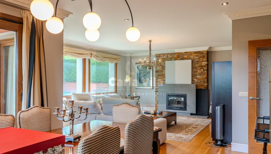 Construido en 2008, este chalet de 416 metros cuadrados combina revestimientos de piedra y granito con la calidez de los suelos de roble sueco. El salón, de 45 metros y totalmente ventanal, conecta naturalmente con un porche y el jardín de una parcela de 1.056 metros, donde la piscina de 35 metros cuadrados se convierte en un espejo de luz durante todo el día. La cocina equipada con office amplio se integra de manera fluida con la zona de estar; un dormitorio doble con armario empotrado y otro dormitorio ahora convertido en despacho, con ventanas en media luna que enmarcan el paisaje, completan la planta baja, junto a un baño completo y un cuarto de plancha con salida al exterior.