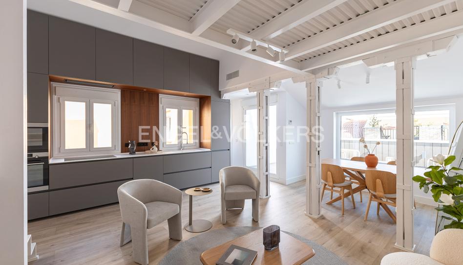 Engel & Völkers, inmobiliaria de lujo, tiene el placer de comercializar este magnífico ático de 86 m2 según Catastro en una 4ª planta exterior con terraza, en finca clásica de 2003 y con ascensor a planta, en el centro del barrio de Justicia. Esta magnífica propiedad se entrega con cuidada reforma a estrenar y acabados de alta calidad en estilo actual. Su característica de exterior se materializa en la fantástica terraza con suelo de madera a la que se accede desde al salón y donde se contemplan las magníficas vistas despejadas al skyline de Madrid. Está distribuida en gran salón comedor diáfano que conserva las icónicas columnas originales tan demandadas en interiorismo. Su cocina americana se ha amueblado a medida y está totalmete equipada con electrodomésticos de alta gama. La zona social la completa un aseo de cortesía decorado al detalle. Para el descanso, la vivienda ofrece dos dormitorios. El principal, con baño completo en suite, es exterior a la misma orientación que la terraza del ático. La gran altura de los techos permite disponer del segundo dormitorio en zona elevada tipo dúplex, con acceso a través de escalera desde el salón, cuenta también con ventana exterior y está abierto a la zona social para adaptarse a las necesidades del nuevo propietario. Una oportunidad como pocas de adquirir un inmueble con características excepcionales en un enclave único delimitado por los puntos cardinales de Gran Vía, Alonso Martínez, Chueca y Castellana. La luz natural que inunda cada zona todo el día, la iluminación indirecta nocturna, el suelo de madera de roble dispuesto en grandes lamas, su amplia terraza para vivir al aire libre en el centro del Centro de la capital, sus ventanas aislantes o la climatización por conductos, son factores que siguen sumando calidades a una pieza única, una inversión segura a un patrimonio perfecto.
