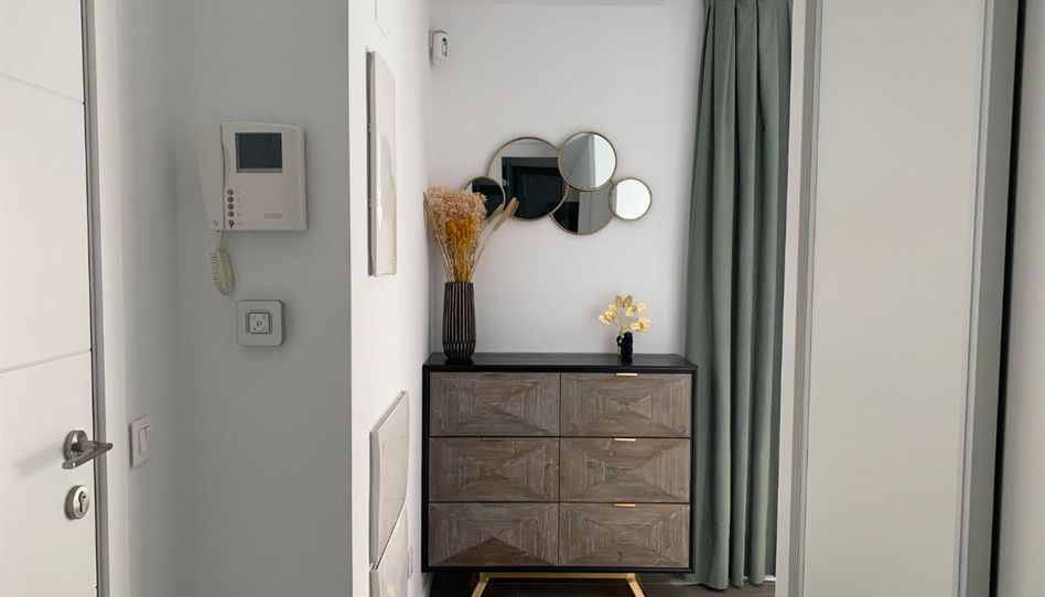 La vivienda se distribuye en tres dormitorios y dos baños completos (uno de ellos en suite) y cuenta con suelo radiante, aire acondicionado, aislante acústico, puerta acorazada, persianas de seguridad automatizadas, columna hidromasaje y cocina completa con porcelánico y altas calidades. La vivienda disfruta de gran luminosidad natural gracias a sus grandes ventanales.