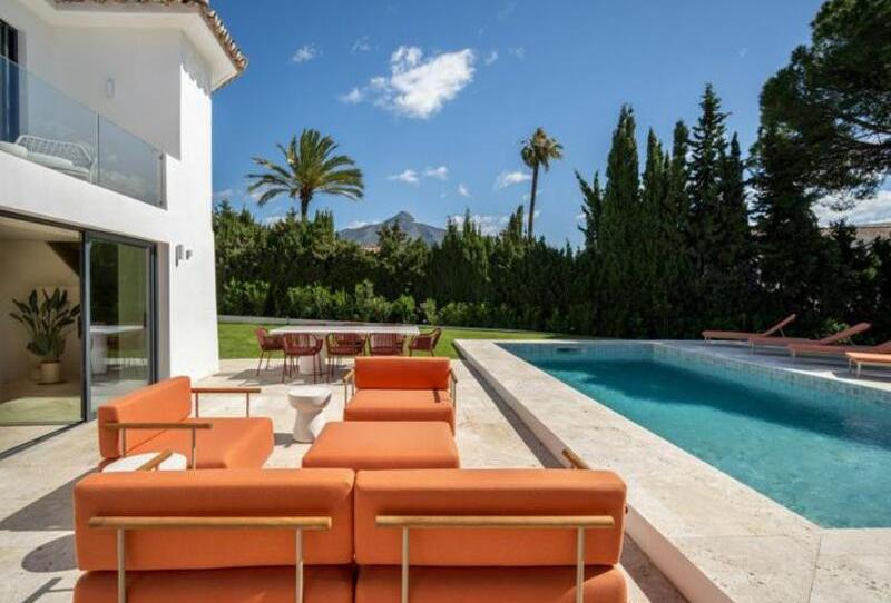 Villa es una impresionante villa mediterránea ubicada en el corazón de Nueva Andalucía. Diseñada para combinar la elegancia contemporánea con la belleza natural, la propiedad está rodeada por un jardín meticulosamente cuidado que la rodea, ofreciendo una sensación de serenidad y privacidad. Altos árboles y exuberante vegetación realzan la privacidad, mientras que la piscina privada al aire libre ofrece un remanso de paz. Con amplio espacio para el entretenimiento, Villa es perfecta para quienes aprecian tanto el lujo refinado como la conexión con la naturaleza.