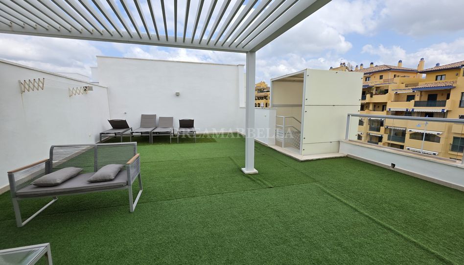 Uno de los grandes atractivos de esta propiedad es su impresionante solárium en la planta superior, al que se accede desde la terraza principal. Este espacio ofrece infinitas posibilidades para crear una zona chill-out, comedor exterior o área de relax, donde disfrutar del sol durante todo el año gracias al privilegiado clima de la Costa del Sol.