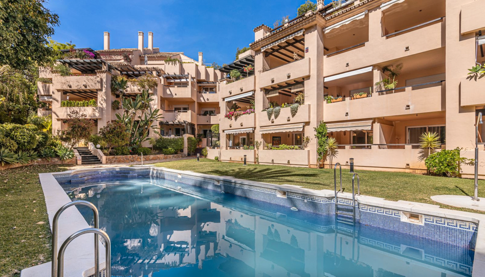 Descubra la joya de Marbella en esta impecable y amplísima planta baja situada en la codiciada Milla de Oro. Este extraordinario inmueble, en perfecto estado y cuidadosamente presentado, le ofrece un espacioso salón-comedor de 40m², ideal para momentos de relajación y reuniones, con acceso directo a una terraza cubierta que recibe el sol de la tarde y brinda vistas directas al jardín tropical y la piscina. La lujosa suite principal, con baño en suite y armarios empotrados, también tiene acceso a esta encantadora terraza, proporcionando un rincón de tranquilidad. Además, la propiedad cuenta con una acogedora habitación para invitados con su propio baño y una cocina completamente equipada que satisface las necesidades más exigentes. La comunidad, completamente cerrada para su seguridad, ofrece una piscina comunitaria y un jardín tropical plano, creando un oasis de paz y confort. La ubicación es simplemente inmejorable: a solo 25 minutos a pie del centro de Marbella, donde encontrará una amplia variedad de servicios y comodidades a su alcance. Este apartamento es más que una vivienda; es una oportunidad para disfrutar del estilo de vida privilegiado que ofrece Marbella. No deje pasar la oportunidad de vivir en un entorno de lujo, rodeado de naturaleza y con todas las comodidades a su alcance. Contáctenos hoy mismo para más información y para concertar una visita.