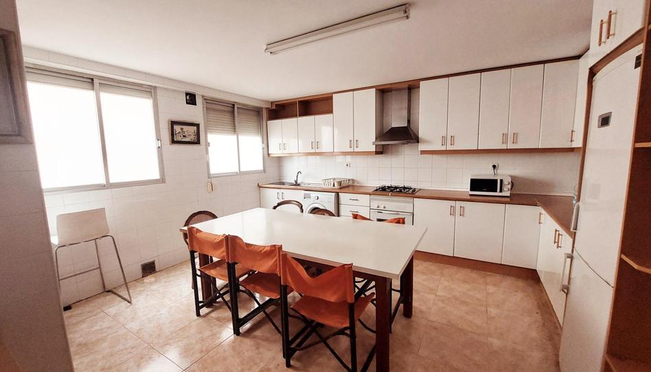 A la derecha tenemos un dormitorio doble con armario y a continuación la enorme cocina de unos 20m2 con un ventanal a la calle, lo mejor de la casa sin lugar a dudas, una maravilla.