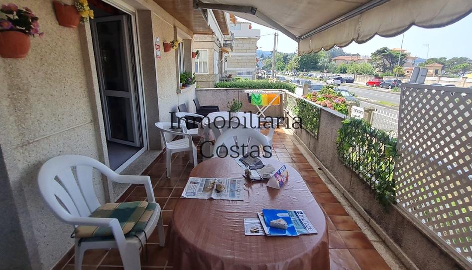 PLAYA AMERICA, SEGUNDA LÍNEA,. A menos de cinco minutos reales andando de la playa, piso de unos 100 metros útiles en bajo de edificio de apartamentos, con amplio garaje y trastero;: jardín, instalaciones de ocio como churrasquera y zona de reunión para amigos. Consta de vestibulo por el que se accede a pasillo distribuidor donde nos encontramos con los tres habitaciones, amplia despensa, dos cuartos de baño y, al fondo, la cocina y el salón con acceso a terraza. Muy buena zona tanto para dedicarlo a piso de vacaciones como para convertirlo en residencia permanente; o incluso dedicar la propiedad a alquiler turístico con una actualización a medida. Comunidad de 50 euros al mes. Mejor visitarlo.