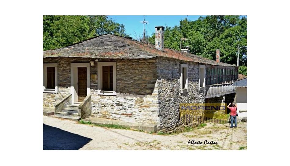 Casa de piedra en buen estado con cocina amueblada, salón amplio y luminoso con chimenea francesa, 4 dormitorios y un baño completo, garaje para 4 coches