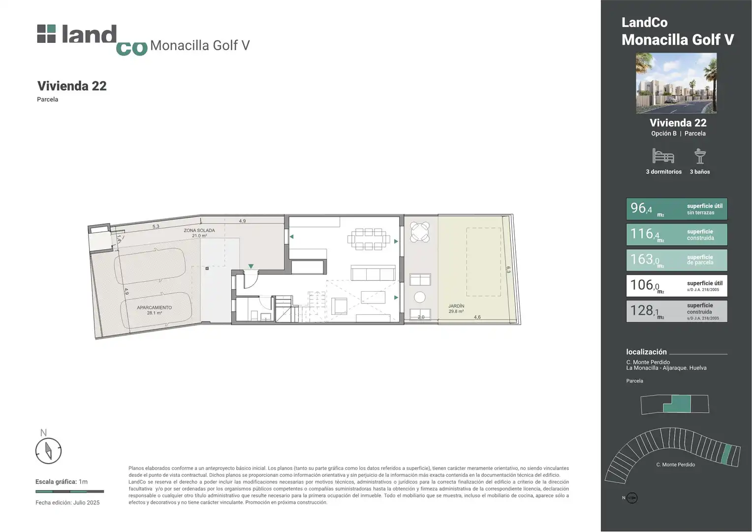 La promoción se encuentra en la Urbanización de la Monacilla, a un paso del centro de Huelva y a escasos minutos de la playa. Este entorno privilegiado, rodeado de pinares vírgenes, favorece un estilo de vida activo, ideal para practicar todo tipo de actividades y deportes al aire libre.