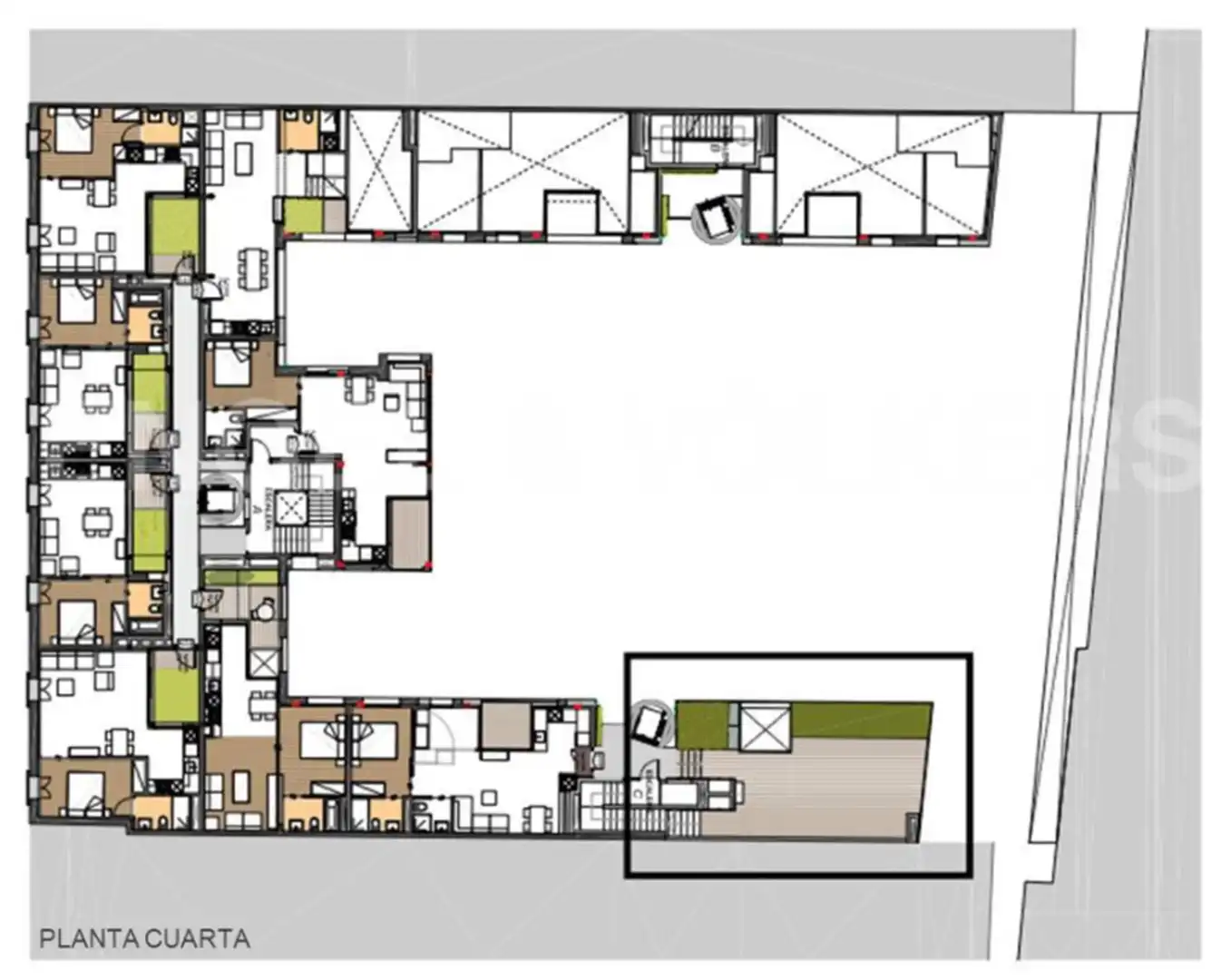 En una comunidad de servicios y espacios comunitarios con piscina, huertos urbanos para el autoconsumo, pasajes arbolados, jardines verticales y zona solárium con impresionantes vistas a la ciudad. Además de servicio conserjería, video vigilancia 24h, reciclaje de aguas pluviales, parking para bicicletas y una sala polivalente (yoga, eventos, gym, cenas, coworking...). Con posibilidad de disponer de una plaza de parking a 50m de la promoción.