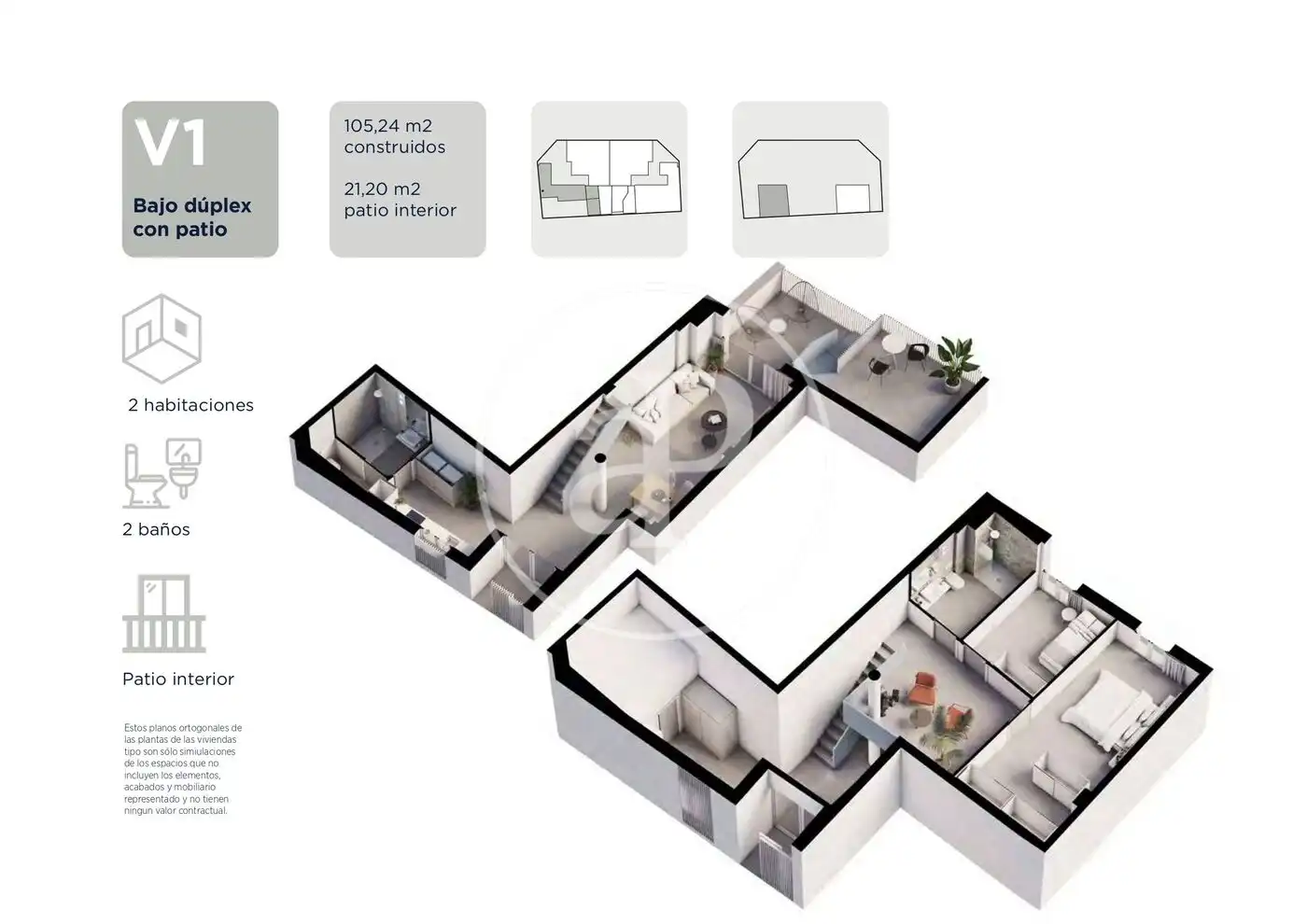 - Patios privados amplios, ideales para crear tu zona chill-out, comedor exterior o espacio de juegos.