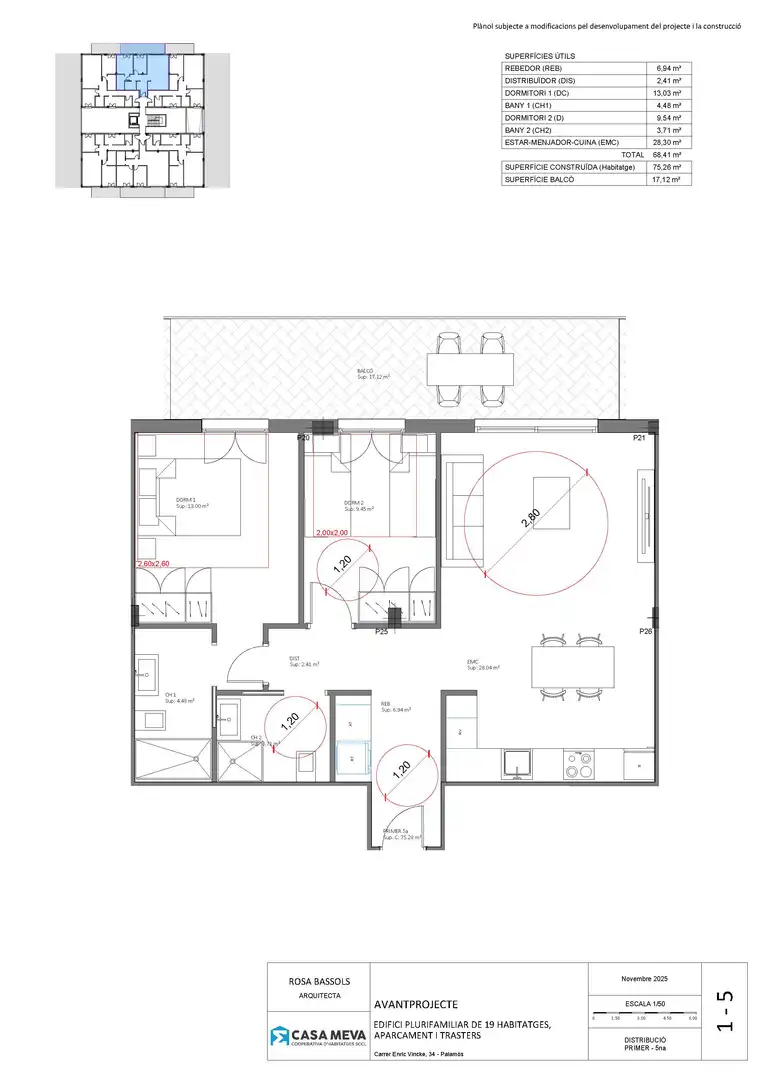 A Palamós, molt a prop del centre comercial, a 8 minuts del Passeig del Mar i de la platja, se'ls ofereix l'OPORTUNITAT de ser propietari d'un habitatge a PREUS DE COST. FASE PALAMOS IV, situada al carrer Enric Vincke, de Palamós. És una promoció formada per 19 habitatges, repartits en 2 blocs, amb tipologies de 2 i 3 dormitoris, amb 2 banys i àmplies terrasses. L´edifici està projectat en planta baixa, més 3 plantes alçades. a la planta soterrani, s'hi ubica l'aparcament privat per a vehicles, amb places de pàrquings i trasters individuals, amb accés per escala i ascensor a l'habitatge. Dissenyat per utilitzar energies renovables i amb l’objectiu d’obtenció del certificat energètic millor possible. Pisos des de 75,27 m/2 fins a 110,65 m/2, tots amb terrasses a PREUS EXCEPCIONALS a partir de 285.500,00 €, amb places de pàrquings opcionals a partir de 22.000 € (preus sense IVA). Aquesta promoció es desenvolupa a RÈGIM DE COOPERATIVA IMMOBILIÀRIA, que és la forma d'adquirir un habitatge a PREU DE COST. Està tot legislat i regulat per la Llei de Cooperatives de Catalunya. L'obra es preveu iniciar principis del 2027 i amb una previsió de lliurament per a finals del 2028. Oferim als compradors les garanties legals per a les quantitats lliurades a compte, així com un seguiment personalitzat i periòdic de l'evolució de l'obra.