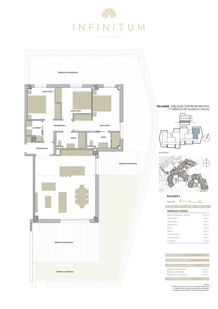 Ubicado en un paraje único, INFINITUM le permitirá disfrutar de un estilo de vida basado en la tranquilidad, el confort y la sostenibilidad, en un entorno natural junto al mar y con toda clase de servicios con tres Campos de Golf, amplia oferta gastronómica y el mejor Beach Club de Europa. Un resort privado integrado en la naturaleza y en una inmejorable localización, a 10 minutos de Tarragona y a 1 hora y 20 minutos de Barcelona.
