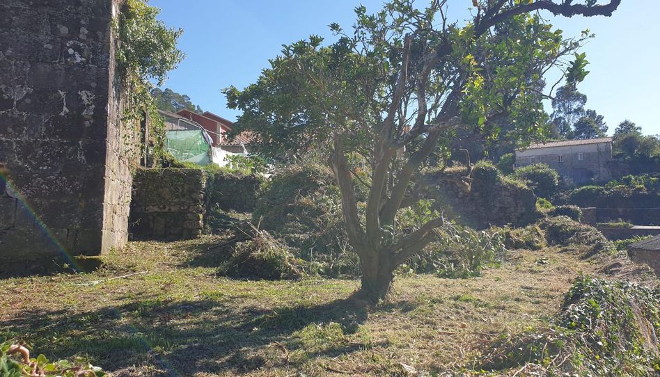 Si quiere vivir en un entorno natural puede visitar esta parcela en el centro de Mougas, muy soleada y con un muro de piedra espectacular que bordea toda la parcela.
