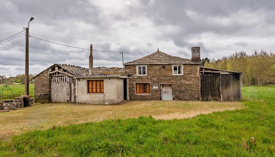 Esta propiedad se encuentra en una tranquila aldea a 6 km de Outeiro de Rei, 7 km de Castro Riberas de Lea y 20 km de Lugo capital. La finca cuenta con 3.693 m² de terreno completamente llano y edificable, que alberga un conjunto de construcciones de piedra a restaurar.