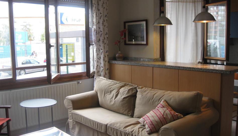 Superficie 50 m2. Dispone de hall de entrada, 1 habitación independiente con cama de matrimonio y armario empotrado, 1 baño completo de 4 elementos con bañera. Cocina americana, separada del salón con una alta isla y 2 banquetas también altas, incorpora vitrocerámica y horno, microondas, frigorífico y lavadora, con ventana y puerta de salida a terraza. El salón se amuebla con un sofá cama, mesa de centro, un mueble librería-aparador, 1 mesa de estudio y dos sillas. Calefacción y agua caliente individual de gas ciudad. Tiene suelos de gres cerámico. Las ventanas son de madera noble. Dispone de ascensor que comunica directamente con la planta de garaje, donde está una amplia zona de aparcamiento, incluida en el precio. Edificio adaptado para personas con movilidad reducida. Posee Certificado de Eficiencia Energética. Mejor ver.