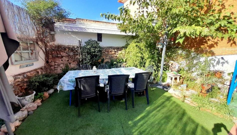 - Terraza y jardín soleado, con plantas y árboles