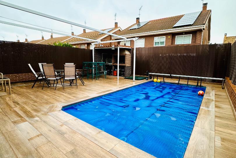La vivienda cuenta con un espectacular jardín privado totalmente reformado, diseñado para disfrutar del exterior con el máximo confort. Destaca su piscina de agua salina, de bajo mantenimiento y gran calidad, ideal para relajarse o compartir momentos en familia y con amigos. El espacio exterior combina perfectamente las zonas verdes con áreas de descanso y ocio, convirtiéndose en uno de los grandes atractivos de la propiedad.