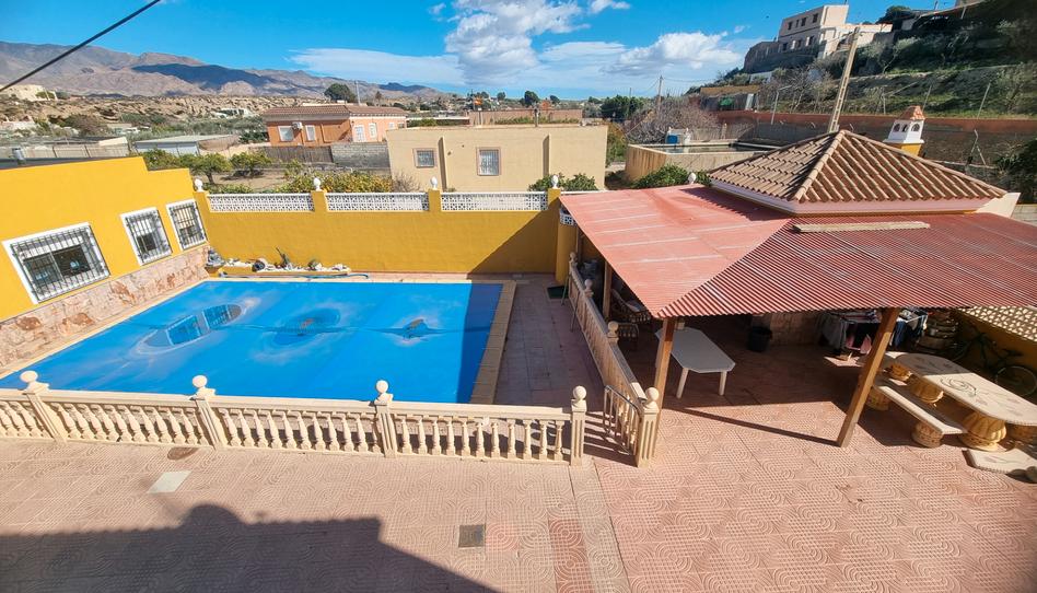 piscina de 10 X 6 metros X 2,00 metros de profundidad con baño y una pergolada de 50 metros de zona de barbacoa, dentro del recinto hay una nave de chapa de 50 metros. una pergola para tres coches, tres habitaciones de aperos. dos portones de aceso, camino asfaltado hasta la misma puerta.