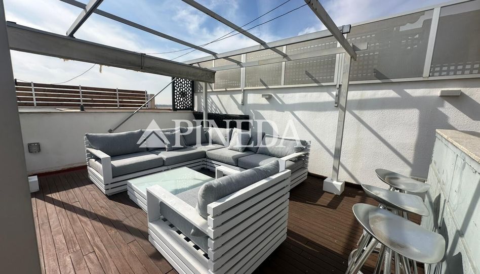 La vivienda recibe con un amplio hall distribuidor que conecta directamente con un salón-comedor luminoso y una cocina abierta de diseño actual. La zona de descanso está formada por cuatro dormitorios y dos baños completos, uno de ellos integrado en la suite principal. Desde el balcón del salón se accede a la planta superior, donde se encuentra la gran terraza de 100 m2, un espacio excepcional que permite crear diferentes ambientes como comedor exterior, zona chill out o área de relax para disfrutar del clima mediterráneo.