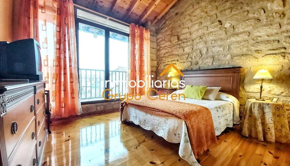 Coqueta casa de pueblo de estructura de madera, con paredes de piedra vista y suelos de madera.