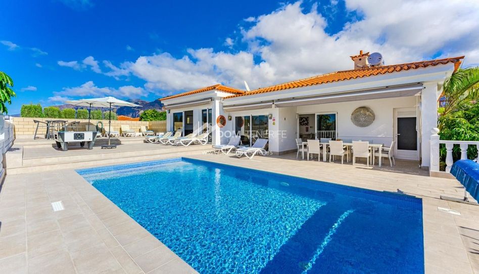 DOM Tenerife presenta una prestigiosa villa con vistas al mar en Playa de La Arena, Tenerife Sur, una oportunidad inmobiliaria única para compradores exigentes que buscan una propiedad de lujo en las Islas Canarias. Esta exclusiva villa de seis dormitorios combina arquitectura contemporánea con un confort excepcional, ofreciendo un estilo de vida exclusivo en una de las zonas costeras más demandadas de Tenerife. La propiedad dispone de seis amplios dormitorios en suite, diseñados para garantizar la máxima privacidad y descanso, todos con aire acondicionado y baños elegantemente renovados con materiales de alta calidad. El espacio de vida de concepto abierto destaca por su diseño, con una integración perfecta entre el salón, el comedor y una cocina moderna totalmente equipada, ideal tanto para el día a día como para recibir invitados. Las amplias terrazas orientadas al suroeste ofrecen vistas ininterrumpidas al océano y espectaculares puestas de sol, convirtiendo el exterior en un elemento clave de esta vivienda de lujo. Los toldos eléctricos aportan mayor confort, mientras que la piscina climatizada de agua salada y las zonas de solárium crean un oasis privado perfecto para disfrutar del excelente clima de Tenerife durante todo el año. Esta exclusiva villa en Tenerife también cuenta con un garaje privado cerrado para dos vehículos, aparcamiento adicional dentro de la parcela y un alto nivel de privacidad, lo que la convierte en una opción ideal como residencia principal, vivienda vacacional o inversión en el competitivo mercado inmobiliario de Tenerife. Con su ubicación privilegiada, diseño moderno y excelentes prestaciones, esta villa de lujo con vistas al mar en Playa de La Arena representa una oportunidad única de adquirir una propiedad de alto valor en Tenerife Sur.