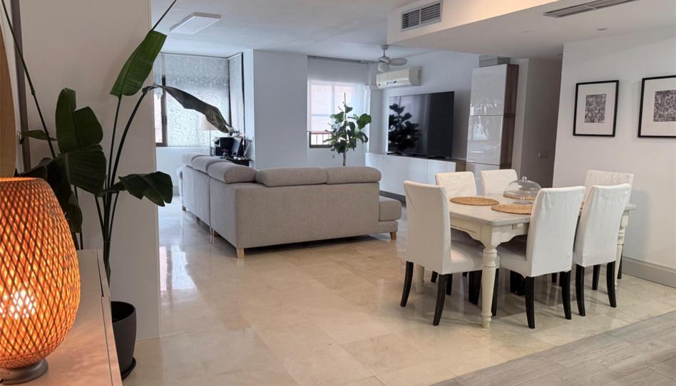 El salón es uno de los grandes atractivos de la vivienda. Amplio, elegante y muy luminoso, se ha beneficiado de la incorporación de la terraza, lo que ha permitido ganar una gran superficie diáfana, ideal para crear distintos ambientes como zona de estar y comedor. La cocina abierta al salón aporta un estilo moderno y actual, favoreciendo la convivencia y la entrada de luz natural. Los suelos de mármol presentes en toda la vivienda aportan frescura, luminosidad y un toque de distinción.