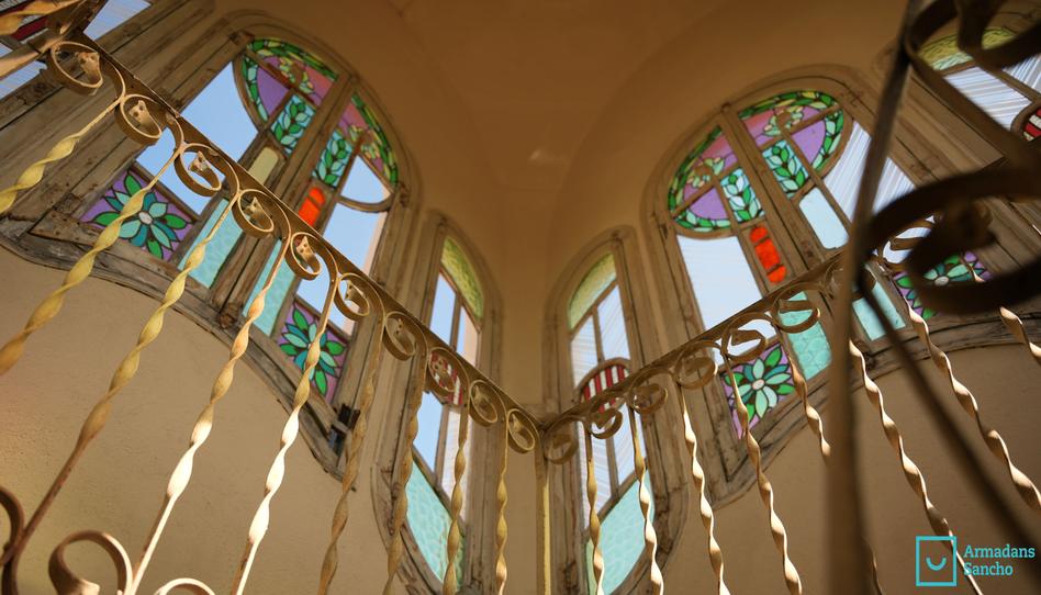 Al entrar en la vivienda, se aprecia el impecable estado de conservación de muchos elementos originales de la época modernista. El suelo de mosaico hidráulico, los techos artesonados, los arcos de gran elegancia, las vidrieras de colores, y sobre todo, la majestuosa torre central abierta a los cuatro vientos, que está decorada con un mosaico de cristales multicolores. Esta torre aporta una luminosidad única a los espacios interiores y ofrece unas vistas espectaculares, tanto de día como de noche, bajo las estrellas.