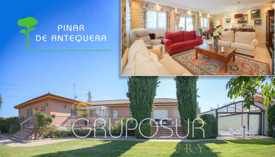 Les presento un extraordinario chalet de lujo con piscina privada en el Pinar de Antequera, construido en una única planta más el sótano y cercano a todos los servicios necesarios en un entorno natural, apacible y con excelentes comunicaciones que permiten estar en el centro de Valladolid en 10 minutos por autovía. La vivienda ha sido construida en el año 2002 con las mejores calidades, con muros extra-gruesos que garantizan un óptimo aislamiento. Tiene 478 m² construidos, con salón, cocina, 5 dormitorios, 5 baños, bodega, y garaje que forman un total de 438 m² útiles. La cocina de 15,80 m², está completamente equipada con mobiliario de madera, encimera de granito y electrodomésticos, con campana decorativa, y tiene una galería que es un cuarto de lavado. El salón es una magnífica estancia, de 60,90 m². Tiene grandes ventanales en dos de sus paredes que le proporcionan abundante luz natural y belleza. Los suelos de toda la vivienda son de mármol en color natural con cenefa en color verde. Está provisto de aire acondicionado con bomba de calor y frío. Una puerta de cristal da acceso a la terraza principal de la vivienda de 47,60 m², situada por encima del nivel del jardín. En total la parcela tiene 1211 m² con un bonito jardín provisto de riego automático, césped y numerosos árboles y arbustos ornamentales. Desde la entrada a la vivienda y a la izquierda encontramos el aseo y el acceso al pasillo que distribuye la zona de descanso, con cuatro grandes dormitorios, dos de ellos en suite. En la planta sótano encontramos la bodega, la zona de servicio con su dormitorio y su baño, un aseo, y el garaje de 108,10 m² con capacidad para 5 vehiculos. La bodega de 38,20 m² está bellamente decorada en estilo castellano. Dispone de aire acondicionado con bomba de calor y frío al igual que el salón, de cocina con fogones de obra y mobiliario de madera con chimenea para asar y una gran campana extractora, vitrocerámica, lavavajillas y frigorífico. En el exterior, junto a la vivienda, se encuentra el pabellón de la piscina cubierta, con estructura de aluminio y grandes puertas correderas.