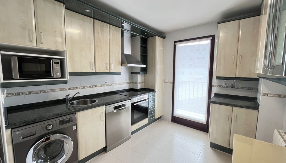 La cocina, completamente amueblada y equipada con electrodomésticos, dispone además de salida directa a un balcón, aportando ventilación y un espacio exterior muy práctico.