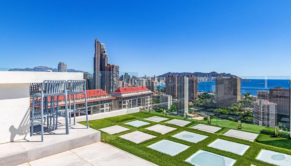 El ático cuenta con 2 dormitorios bien equipados con vistas al mar, un despacho que podría pasar a ser un tercer dormitorio, y 2 baños modernos, uno de ellos en la entrada y el otro integrado en el dormitorio principal, el cual tiene acceso directo a una terraza que dispone de jacuzzi y ducha exterior.