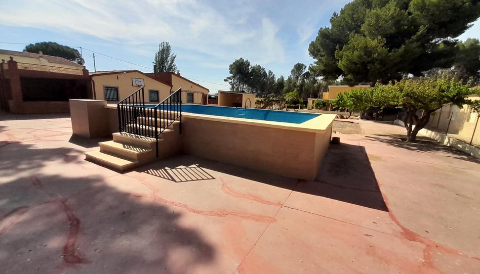Casa de campo en venta en Villena, de 170 m2, compuesta de 5 dormitorios, dos de ellos de matrimonio , baño, aseo, piscina, marquesina, con 800 m2 de hormigón, la casa dispone de techado para tres coches, barbacoa, y 3 bebederos para caballos.