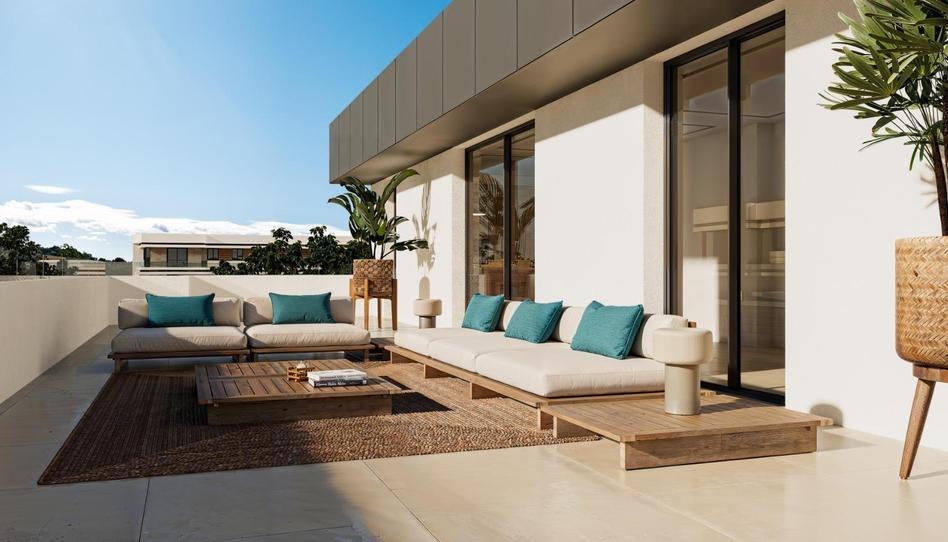 Pavimento laminado Balteiro en el interior y porcelánico antideslizante Natucer 90x90cm en terrazas.