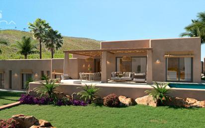 Villa ibicenca en la urbanización Las Lomas Del Rey en Javea en la Costa Blanca Norte, descubra la Villa Loma, una verdadera joya arquitectónica. Este refugio de paz se encuentra en el corazón de un entorno natural excepcional, entre los paisajes verdes del parque natural, las impresionantes vistas del monte Montgó y el hermoso valle circundante. La ubicación de Las Lomas Del Rey es notable. A solo cinco minutos, encontrará la XIC, una escuela internacional prestigiosa que abrirá sus puertas en diciembre de 2024. Las playas de arena fina de Arenal, perfectas para días memorables junto al mar, están a seis minutos en coche. Los amantes de la naturaleza apreciarán la proximidad del Parque Natural de la Granadella, ideal para caminatas que ofrecen vistas impresionantes del Mediterráneo. Estos atractivos, combinados con la proximidad de campos de golf y restaurantes, hacen de Las Lomas Del Rey un lugar de vida único, que combina el confort moderno con el encanto natural. La construcción de la Villa Loma, prevista para comenzar en febrero de 2024, presenta una orientación suroeste. Inspirada en los estilos mediterráneo e ibicenco, se caracteriza por sus ángulos redondeados, sus vigas vistas y sus techos abovedados adornados con vigas, recordando las curvas del paisaje mediterráneo. Su techo de tejas de arcilla y sus grandes ventanas equipadas con persianas garantizan una luminosidad natural óptima, convirtiendo esta residencia en un refugio de tranquilidad. El exterior de la villa es un espacio diseñado para el relax, con su jardín mediterráneo cuidado, su piscina de aguas turquesas y sus amplias terrazas soleadas, ideales para comidas familiares bajo el clima suave de Jávea. La Villa Loma, de una sola planta, cuenta con un espacioso salón-comedor, una cocina totalmente equipada, un lavadero, tres cómodas habitaciones con armarios, tres baños en suite, así como un aseo para invitados. La villa está equipada con una pérgola para dos coches, aire acondicionado, conexión wifi, un videoteléfono y un sistema domótico para la iluminación. Los elegantes acabados incluyen piedras naturales talladas a mano y vigas de madera, reflejando la auténtica elegancia de la región. ATINA • Luxury Real Estate | Inmobiliaria en Javea SPAIN Disponemos de VILLAS de LUJO con espectaculares Vistas , Chalets, Adosados, Casas, Apartamentos en Primera línea de Playa, JAVEA • Costa Blanca • .