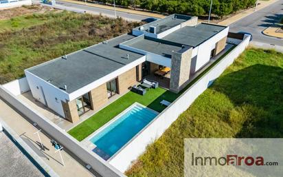 INMOAROA les presenta este espectacular chalet de diseño y de reciente construcción en Moncófar , a pocos minutos de la playa. Sobre una parcela de 548 metros cuadrados se asienta esta bonita y moderna vivienda , toda en una única planta, la cual dispone de una superficie de 260 metros construidos, distribuidos en amplio y luminoso salón-comedor con cocina integrada y acceso a la terraza, 4 dormitorios, 2 cuartos de baño completos (1 de ellos en suite) y 1 aseo de cortesía. El dormitorio principal dispone de vestidor. Cabe destacar que los dormitorios tienen acceso al exterior, así como sus calidades y equipamiento, tales como: Ventanas dobles de seguridad, (con rotura de puente térmico) para mayor protección y eficiencia, persianas eléctricas, climatización por aire frío/calor a través de conductos (independiente en cada estancia) y sistema de Aerotermia de gran capacidad, alto rendimiento y bajo consumo. En el exterior, cuenta con una amplia terraza, paellero, piscina y parking cerrado para 1 vehículo. Solicite información sin compromiso. >>Este anuncio es meramente informativo, puede contener errores o discrepancias con la realidad. Su intención es presentar el inmueble y carece de carácter contractual. El precio no incluye impuestos, gastos de notaría, gastos de registro de la propiedad y tampoco incluye honorarios profesionales por intermediación en la posible compraventa de la agencia inmobiliaria.<< \"No vendemos casas, vendemos ilusiones\"