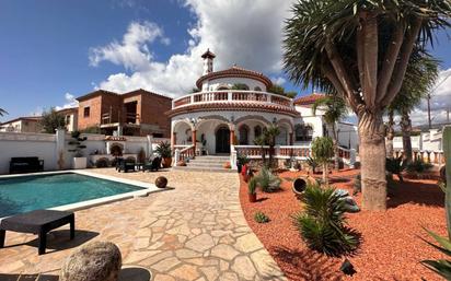 Esta preciosa casa totalmente reformada con mucho gustos se ubica en inmejorable situacion, a un paso del centro y de la playa. Su espectacular entrada la hace única y diferente, e invita a pasar y disfrutar de momentos inolvidables. La casa dispone de precioso porche donde disfrutar los días y las comidas y que da acceso a la puerta principal. A la entrada nos encontramos un bonito hall que da acceso a la cocina individual y totalmente equipada para disfrutar cocinando en familia y a un precioso salón - comedor que también dispone de salida al porche. Desde el comedor se accede a una primera planta que dispone de una habitación doble con armario empotrado y cuarto de baño propio también dispone de salida al bonito balcón. En planta baja dispone este chalet de otras dos habitaciones tipo suite, cada una con su propio baño y una con acceso a la guardilla con infinitas posibilidades. La casa dispone en la gran parcela de 569 metros de una piscina a Sal muy bonita, un jardín diseñado, terraza, y también ducha exterior. No lo dudes y ven a visitar esta joya.