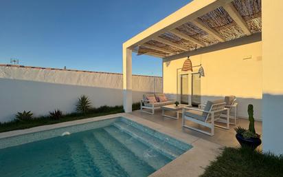 🏡 Chalet en Venta – Pago Melilla (Chiclana de la Frontera), a solo 3 km del Novo Sancti Petri Se vende estupendo chalet ubicado en la tranquila zona de Pago Melilla, a pocos minutos de las playas y campos de golf del Novo Sancti Petri. Una oportunidad única para quienes buscan privacidad y cercanía al mar. La vivienda se asienta sobre una parcela indivisa de 500 m² (no hipotecable) y cuenta con 135 m² construidos, incluyendo un amplio porche de 30 m² perfecto para disfrutar del clima de la zona. En su interior encontramos: Luminoso salón-comedor con chimenea y cocina americana integrada. Tres dormitorios dobles, dos de ellos con armarios empotrados. Dormitorio principal en suite, con baño incorporado. Un segundo baño que da servicio a las otras dos habitaciones. Acceso directo al porche desde el salón y el dormitorio principal. En el exterior: Piscina de obra rodeada de césped natural. Espacio para aparcar hasta tres vehículos dentro de la parcela. Agua de pozo propio y dos depósitos de gran capacidad (12.000 L y 3.000 L) para garantizar suministro. La casa está lista para entrar a vivir y disfrutarla como residencia habitual, segunda vivienda o inversión vacacional. 📞 Contacta para más información o concertar una visita En cumplimiento del Decreto 218/2005, de 11 de octubre, por el que se aprueba el Reglamento de información al consumidor en la compraventa y arrendamiento de viviendas en Andalucía, se pone en conocimiento de nuestros clientes que en el precio reflejado en el anuncio no están incluidos los gastos inherentes a la compraventa, tales como Notaría, Registro, ITP, los honorarios de la Agencia y otros.