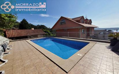 Se vende espectacular casa cerca de la playa de Area de Bon en Beluso y a pocos minutos de Aldán, ideal para quienes buscan tranquilidad. Esta propiedad cuenta con una impresionante piscina de agua salada con vistas, una zona de asador cubierto, y vistas directas al mar desde varias estancias de la vivienda. Además, la casa está equipada con alarma, hilo musical en toda la vivienda, y calefacción eléctrica para su máximo confort durante todo el año. El amplio terreno de 885m² está distribuido en dos jardines con riego automático, dos pozos de agua, alcantarillado y la posibilidad de conectarse a la red pública de agua. La casa, de tres plantas, destaca por su luminosidad gracias a sus grandes ventanales. La planta baja de 104m² alberga un espacio diáfano que incluye salón, comedor y cocina, complementado con una acogedora chimenea, además de un baño completo, una despensa, un garaje y una terraza de 33m² con acceso directo al jardín. La primera planta tiene una superficie de 152m², donde encontrarás tres habitaciones con armarios empotrados, dos baños (uno de ellos en suite con una amplia ducha), y una pequeña sala de estar, ideal como rincón de lectura o trabajo. La planta bajo cubierta con una superficie de 167m², revestida de madera y sin divisiones, ofrece un espacio diáfano con grandes ventanales y vistas espectaculares, perfecto para personalizar según tus necesidades. Por último, en el sótano, se encuentran dos bodegas, ideales para almacenamiento. Una oportunidad única de vivir en un entorno natural privilegiado, con todas las comodidades y un diseño pensado para disfrutar al máximo del estilo de vida cerca del mar. ***** INMOBILIARIA MORRAZO HOUSING...UNA LLAVE PARA TÍ *****