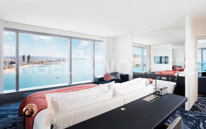 Este apartamento de 50 m² consta de un amplio y luminoso salón/dormitorio con impresionantes vistas directas al mar en primera línea. Ha sido decorado con buen gusto con muebles vanguardistas de alta calidad y es extremadamente luminoso gracias a los grandes ventanales del suelo al techo. El hermoso suelo de moqueta con temática marina para el máximo confort crea una conexión perfecta entre el interior y el exterior. Esta atención a la comodidad y los detalles también se refleja en el espacio del baño, con una generosa y lujosa ducha de efecto lluvia, inodoro y lavabo separados. Hay un espacio para guardar ropa, en el que encontramos una caja fuerte para guardar tus pertenencias más preciadas. Tenga en cuenta que no hay cocina, pero hay una nevera pequeña, una cafetera Nespresso y un hervidor de agua. Incluido en el precio del alquiler está el desayuno diario, una plaza de aparcamiento y recibirás un 25% de descuento en varios servicios extra que ofrece el edificio. Además, tendrá acceso gratuito al gimnasio totalmente equipado, desde el que podrá disfrutar de las impresionantes vistas al mar y a la ciudad mientras hace ejercicio, así como a la increíble zona de spa con bañera de hidromasaje, sauna, baño de vapor y zona de relax con piscina interior. En el espacio exterior, que convenientemente tiene acceso directo a la playa, encontramos 2 piscinas. Una está situada en la azotea del edificio, y ambas piscinas están rodeadas de terrazas con tumbonas. Se puede disfrutar de una comida exquisita en uno de los 2 elegantes restaurantes o tomar un delicioso cóctel en el bar de la azotea con vistas panorámicas al mar. En el edificio también hay 2 restaurantes y un bar de cócteles, fácil y cómodo para un almuerzo rápido o una buena cena sin tener que desnivelar el local. La vivienda ideal para solteros o parejas que busquen el máximo confort, impresionantes vistas, cerca de la playa y del centro de la ciudad. Disponible para alquiler temporario, mínimo 32 días.