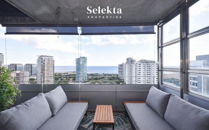 Espectacular piso en alquiler temporal situado en una 18ª planta con vistas panorámicas al mar. La vivienda, recién reformada y completamente amueblada, dispone de dos habitaciones dobles exteriores muy luminosas con armarios empotrados, un baño completo y moderno con ducha. En la zona de día dispone de un amplio salón comedor con acceso directo a una terraza de 15 m2 amueblada con sofás desde donde se disfrutan unas inmejorables vistas al Mediterráneo. La cocina independiente totalmente equipada con electrodomésticos, con una acogedora zona de desayunos con vistas al mar y salida directa a la terraza. El piso cuenta con aire acondicionado por conducto y calefacción. El edificio ofrece todas las comodidades de un residencial de alto nivel, con piscina comunitaria, gimnasio, dos ascensores y servicio de conserjería 24 horas, lo que convierte esta vivienda en una oportunidad única para disfrutar de la comodidad, el diseño y el privilegio de vivir frente al mar. Parking a parte en la misma finca. Vivienda situada en zona de mercado residencial tensionado: SI -Condición del arrendador de gran tenedor: SI -CEDULA: CHB02335313001 -SUPERFICIE CONSTRUIDA: 89 m2 -SUPERFICIE UTIL: 63.8m2 - Alquilado en los últimos 5 años: NO – Precio de renta conforme al indice de referencia • Índice de referencia: 2.270,21€ • IBI: 79,83€ /mes • Gastos de comunidad: 192,94€ Total mensual: 2542,98€ €.