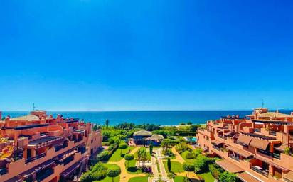 ¡Descubre esta impresionante propiedad en alquiler de larga temporada! Disponible desde ya!! Este amplio ático de 3 plantas ofrece vistas panorámicas al mar y está ubicado en la exclusiva urbanización de Playa del Ángel, detrás de Trocadero Estepona. La urbanización, situada en primera línea de playa, cuenta con cuidados jardines, una gran piscina comunitaria y una zona con terrazas cubiertas, mesas y zona de barbacoa para disfrutar al aire libre. La distribución del piso se divide en tres plantas: en la primera planta, encontramos una amplia cocina independiente, una habitación, un aseo de invitados y un luminoso salón comedor con acceso a una terraza con puertas correderas de cristal y vistas al mar. En la segunda planta, hay otra amplia habitación con vistas a la montaña y un baño completo, así como la habitación principal en suite con una amplia terraza con vistas al mar. Desde esta terraza, se accede a la tercera planta, un solarium de gran tamaño que cuenta con un jacuzzi, hamacas y espacio suficiente para una zona chill-out o una mesa donde disfrutar de las impresionantes vistas frontales al mar, así como de una vista de 360 grados a la montaña y Estepona. El precio del alquiler incluye una plaza de parking subterránea privada. Las condiciones son 2 meses de fianza, 2.850€ mensuales, pago anual o semestral por adelantado, con buenas referencias y prueba de fondos o ingresos. ¡No te pierdas la oportunidad de vivir en este espectacular hogar frente al mar! Tiene a su disposición el documento informativo abreviado. Gastos: Impuestos (ITP o IVA+AJD) + Gastos notariales y registrales. Para más información y para concertar una visita, no dude en ponerse en contacto con nosotros. ERE