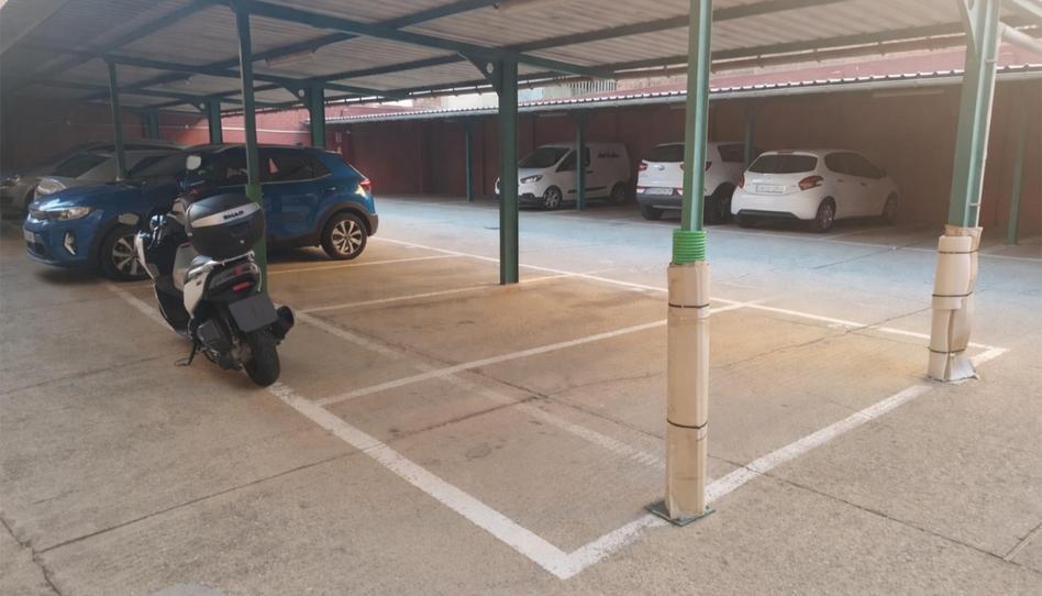 La plaza es abierta pero cubierta, con estructura metálica tipo parasol, similar a la de los parkings de grandes superficies, lo que protege el vehículo del sol, la lluvia y las heladas, especialmente importante en invierno.