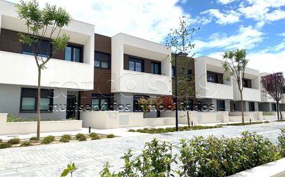 "SonCasas" alquila magnífico chalet adosado prácticamente a estrenar, en Parque Boadilla de 5 dormitorios. Perteneciente a una fabulosa urbanización privada de lujo, con inmejorables zonas comunes y excelentes vistas despejadas a la montaña. Con calificación energética A. La vivienda de reciente construcción del 2021, dispone de 245 m2 construidos distribuidos en 3 plantas. La planta baja dispone de un amplio y luminoso salón con salida al jardín privado de 80 m2, con parte solada y parte ajardinada y con excelentes vistas despejadas a la montaña; amplia y moderna cocina; un baño completo con ducha; 1 dormitorio y amplio hall distribuidor. La primera planta se divide en 4 dormitorios, uno de ellos en suite y con vestidor, 2 cuartos de baño completos muy modernos y actuales. En la planta sótano nos encontramos un amplísimo salón de mas de 42 m2 con luz natural, con zona separada de tendedero y zona de lavandería, gracias a un practico patio inglés que dará iluminación y ventilación natural, cuarto de instalaciones y salida directa al cómodo garaje comunitario donde dispondremos de 2 plazas privadas para aparcar, con preinstalación para recarga de vehículos eléctricos. La fachada del chalet de imagen actual y moderna combina piezas cerámicas y monocapas claros. La carpintería de aluminio con rotura de puente térmico es gris en fachada y blanca en el interior combinando con la carpintería de madera y armarios distribuidos por toda la casa en blanco. En planta baja los suelos son de gres de primera calidad, primera planta laminado de primera y en sótano de hormigón pulido. Baños con gres en piedra; mueble y lavabo todo de Porcelanosa. Mecanismos eléctricos de diseño y primera calidad. Cocina equipada con encimera de cuarzo. Puerta acorazada, puntos de luz en terraza y porche, y puntos de agua y riego automático en jardín. Sistema novedoso de Geotermia para producción de ACS y climatización por suelo radiante/refrescante con termostatos independientes por estancias. Con un importantísimo ahorro de energía. CALIFICACION ENERGÉTICA A, gracias a los excelentes aislamientos térmicos, ventilación higroregulada y el sistema de Geotermia. PROMOCION RESIDENCIAL SEGURA Y SALUDABLE. ZONAS COMUNES PRIVADAS DE LA URBANIZACIÓN: Piscina para adultos y otra para niños, 2 pistas de pádel, 1 de tenis, una pista multideportiva, gimnasio, circuito de running, bar, sala social gourmet, salón de belleza, sala de estudio, vestuarios, aseos, parque infantil y salón de juegos para los niños. URBANIZACIÓN PRIVADA con doble valla de control de acceso y circuito cerrado privado de TV, aparcamiento para visitantes, zona central de Wifi, buzones inteligentes y espacio cardio protegido. URBANIZACION rodeada de todos los servicios necesarios para el día a día, comercios, transporte público, hospitales, supermercados....buenas comunicaciones. Operación sujeta a aprobación de seguro de impago por aseguradora. Mes de Fianza + mes en curso + mes de agencia por tratarse de vivienda suntuaria (excede de 300 m2) y queda excluida de la nueva Ley de Vivienda.