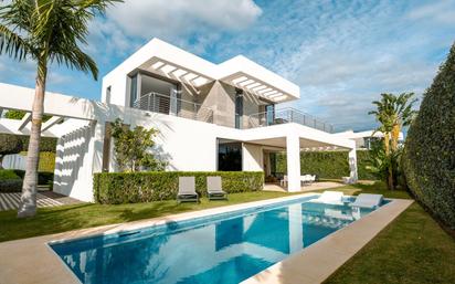 Villa de Lujo en Cancelada para Alquiler de Corta y Larga Temporada --> ALQUILER SEMANAL EN VERANO --> POSIBILIDAD DE ALQUILER MENSUAL EN INVIERNO (7.000 €/mes – SEPTIEMBRE A JUNIO) Moderna Villa de Lujo de 3 Dormitorios con Piscina Privada, Sala de Cine y Zonas de Entretenimiento Disfrute de una estancia exclusiva en esta moderna villa de lujo de 3 dormitorios y 3,5 baños, idealmente ubicada en Cancelada, Estepona, a pocos minutos de la playa y con fácil acceso a Puerto Banús y Marbella. Diseñada para ofrecer comodidad, privacidad y entretenimiento, esta villa independiente es perfecta para familias, parejas o grupos de amigos que buscan una experiencia de alto nivel en la Costa del Sol. La vivienda cuenta con tres amplios dormitorios, cada uno con su baño en suite, además de un aseo de cortesía, garantizando el máximo confort y privacidad para todos los huéspedes. El interior está acabado con materiales de alta calidad y ofrece un elegante espacio diáfano de salón y comedor, mobiliario contemporáneo y grandes ventanales de suelo a techo que aportan abundante luz natural y conectan armoniosamente el interior con el exterior. En el exterior, la villa dispone de una piscina privada, tumbonas, una zona de comedor cubierta y varias áreas de descanso rodeadas de un tranquilo jardín, ideales para disfrutar de comidas al aire libre, desayunos relajados o copas al atardecer con total privacidad. La propiedad incluye aparcamiento privado para dos vehículos, aportando comodidad y seguridad a los huéspedes que se desplacen en coche. Situada a tan solo 5 minutos de la playa y a aproximadamente 15 minutos de Puerto Banús, la villa se encuentra cerca de excelentes restaurantes, beach clubs, campos de golf y zonas comerciales, todo ello dentro de un entorno residencial tranquilo y exclusivo. Tanto si busca una escapada vacacional de lujo como una residencia elegante para estancias prolongadas, esta villa ofrece el equilibrio perfecto entre estilo, confort y ubicación, garantizando una experiencia inolvidable en la Costa del Sol.