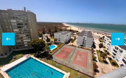 *Alquiler de Piso en Playa de Valdelagrana, El Puerto de Santa María* Disfruta del verano en uno de los lugares más animados y encantadores del Puerto de Santa María. Este fantástico piso se encuentra en primera línea de la Playa de Valdelagrana, una de las más conocidas y populares de la zona. En verano, la playa se llena de vida con atracciones infantiles, un extenso paseo marítimo repleto de bares, heladerías, supermercados y mucho más. Además, las noches de verano se animan con puestos de vendedores ambulantes que ofrecen entretenimiento para toda la familia. *Características del Piso:* - *Ubicación:* Primera línea de playa en Valdelagrana. - *Distribución:* - *Salón comedor* con acceso a una terraza privada con vistas al mar. - *Cocina amueblada* y equipada con electrodomésticos. - *Baño completo*. - *Dos amplios dormitorios* con vistas al mar. *Características de la Urbanización:* - Zonas ajardinadas. - Dos ascensores. - Dos piscinas: una olímpica y una infantil. - Dos pistas de tenis. - Aparcamiento privado en superficie. Opciones flexible de alquiler, por días, quincenas, mensual, incluso por temporada escolar. Alquiler por día en verano 129 € / por semanas 750 € / Quincenas 2.500 € / Temporada escolar 600 euros el mes Este piso es ideal para disfrutar de la comodidad y el encanto de vivir junto al mar, con todas las facilidades y servicios a tu alcance.
